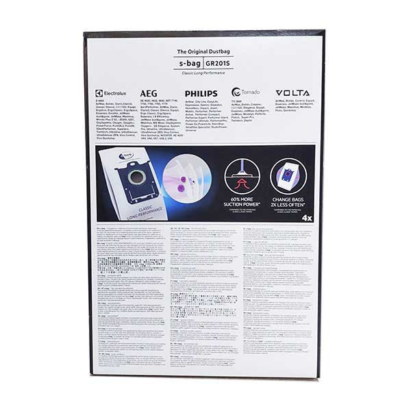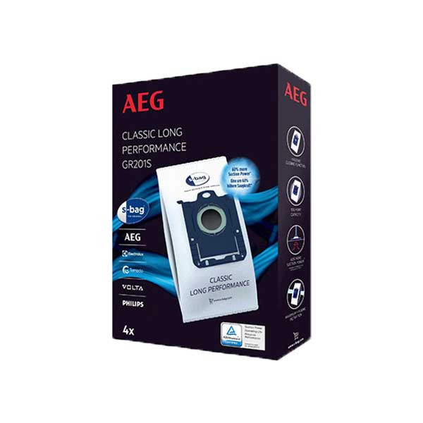 هر بسته پاکت جاروبرقی آاگ مدل GR201S اورجینال شامل 4 عدد کیسه جاروبرقی S-bag کلاسیک بوده و برای مدل های مختلف جاروبرقی الکترولوکس، آاگ و فیلیپس قابل استفاده است.