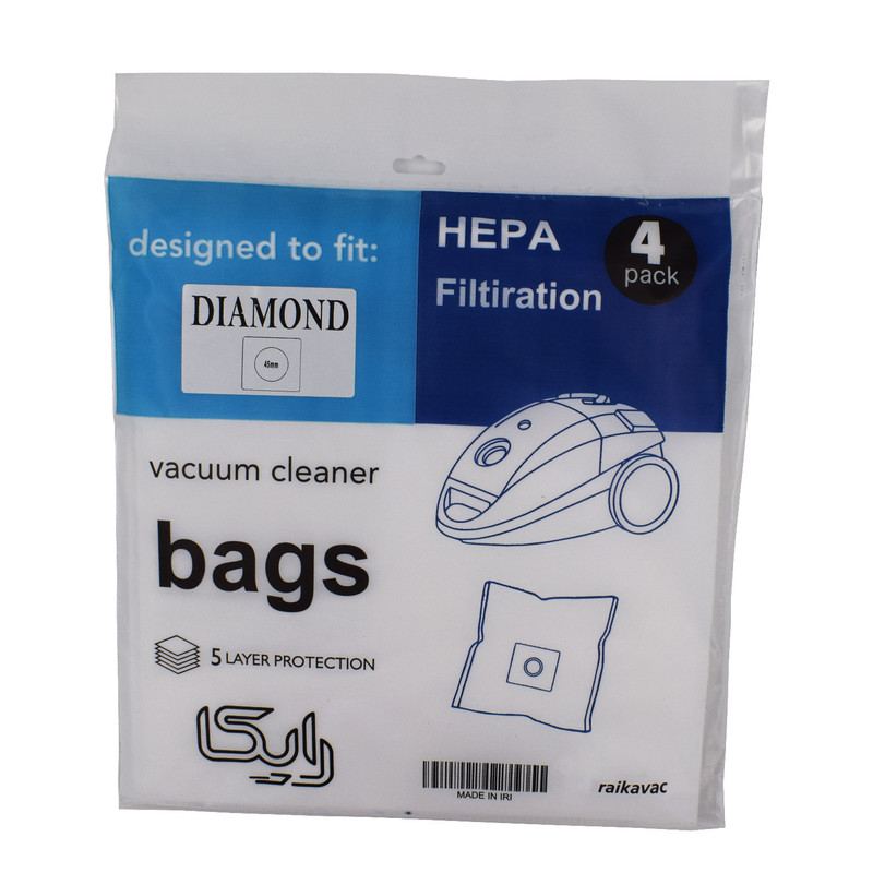 کیسه جاروبرقی یکبارمصرف رایکا با 5 لایه هپا در هر طرف تهیه شده که بااستفاده از فناوری اولتراسونیک به یکدیگر متصل شدهاند. بافت منسجم این کیسه و عدم وجود شکاف در محل اتصال از ورود ذرات به موتور و درنهایت هوای داخلی اتاق ممانعت کرده و موجب افزایش عمر دستگاه، مصرف کمتر انرژی و بهبود قدرت مکش میشود. این محصول مناسب جاروبرقیهای دیاموند ساخت چین با ورودی کوبل 45 میلیمتر است و در بستهبندیهای 4 عددی نایلونی ارائه میشود.