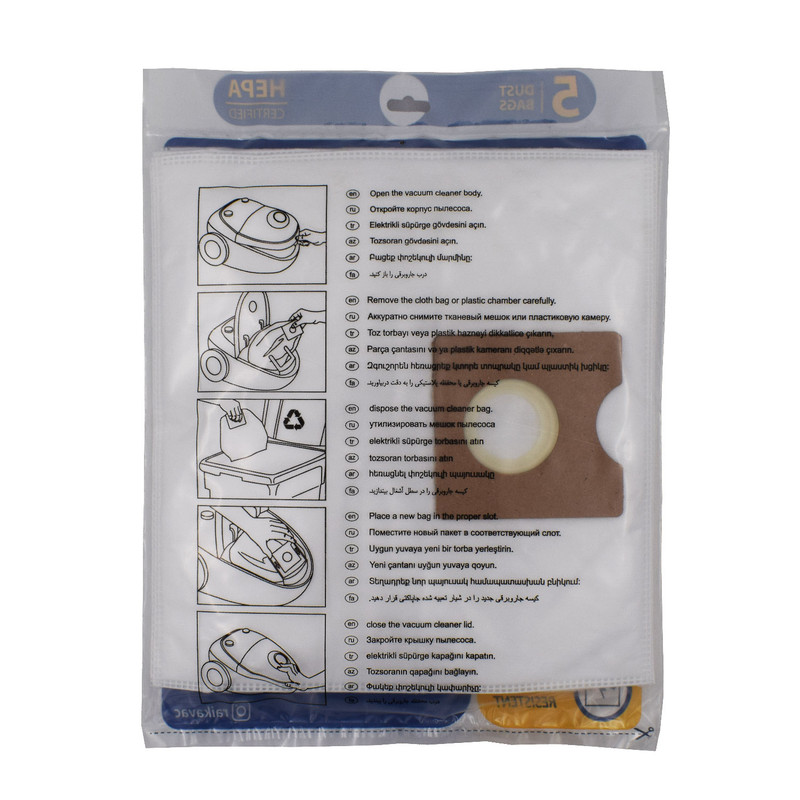 کیسه جاروبرقی یکبارمصرف رایکا با 5 لایه هپا در هر طرف تهیه شده که بااستفاده از فناوری اولتراسونیک به یکدیگر متصل شدهاند. بافت منسجم این کیسه و عدم وجود شکاف در محل اتصال از ورود ذرات به موتور و درنهایت هوای داخلی اتاق ممانعت کرده و موجب افزایش عمر دستگاه، مصرف کمتر انرژی و بهبود قدرت مکش میشود. این محصول مناسب جاروبرقیهای پارس خزر 104 است و در بستهبندیهای 5 عددی نایلونی ارائه میشود.