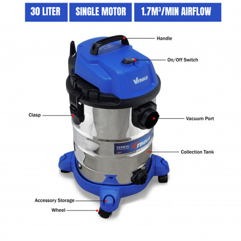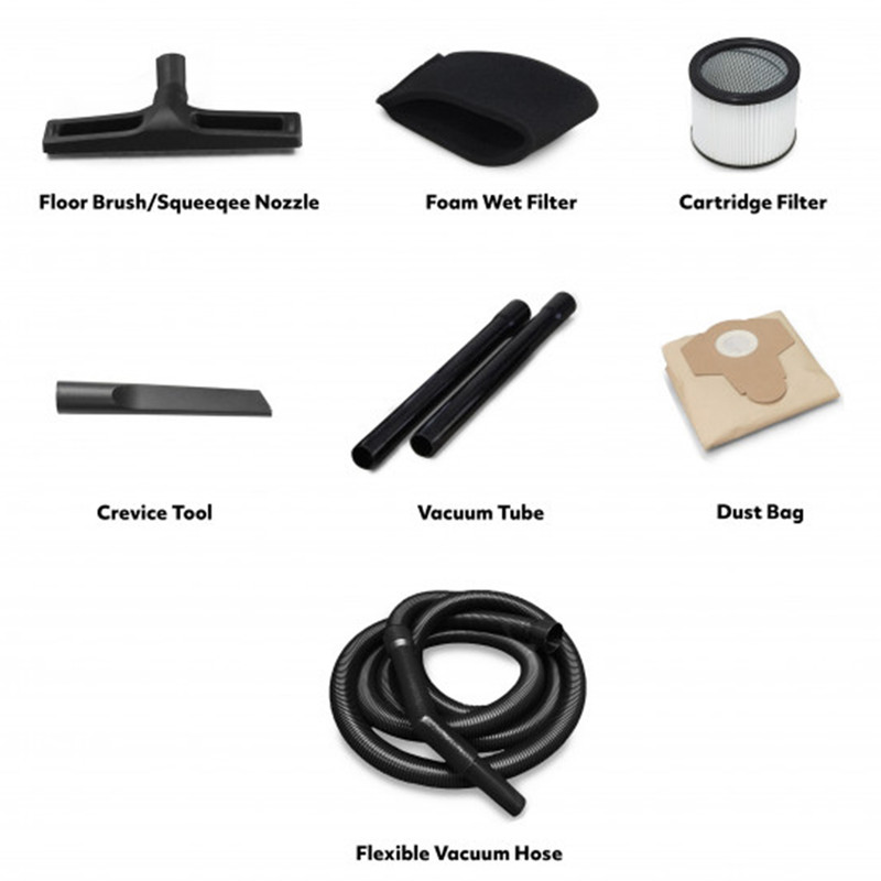 ۱ شلنگ ۱.۵ متری، ۱ برس کف ۳۲ میلیمتری برای تمیز کردن خشک و مرطوب، ۱ کیسه گرد و غبار کاغذی، ۱ نازل کوچک، ۲ لوله پلاستیکی، ۱ فیلتر فومی، ۱ فیلتر و پریز برق BS با سیم ۴ متری