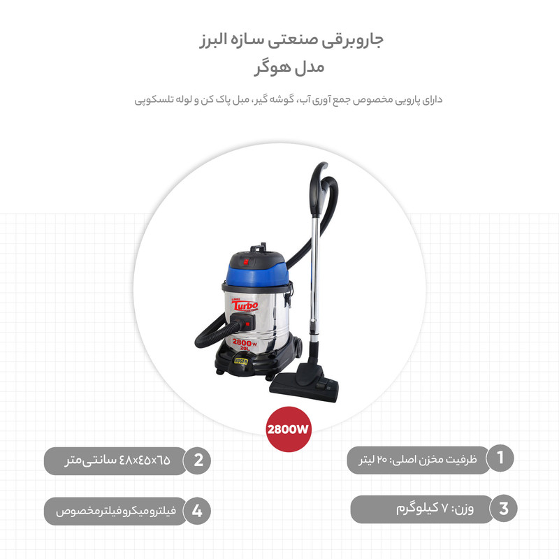 حتما تاکنون چندین بار با ریختن مایعات در منزل خود مواجه شده اید و میدانید که تمیز نمودن مایعات از سطوح سخت و زمانگیر است به همین سبب شرکت جاروبرقی البرز دستگاه هوگر را طراحی نموده است تا علاوه بر پاک نمودن انواع گرد و غبار از سطوح بتواند مایعات را نیز جمع آوری نماید لذا هوگر یکی از پر کاربردترین جاروبرقی های مناسب منازل و فضاهای با متراژ کوچک و متوسط میباشد. جاروبرقی هوگر با طراحی و ابعاد مناسب فضای خانه و در سه رنگ زرد و آبی و قرمز عرضه شده است . وزن سبک این دستگاه به کاربر این امکان را میدهد که به راحتی دستگاه را جابه جا نماید .بدنه جاروبرقی هوگر از جنس استیل محکم و با دوام ضدزنگ میباشد که مناسب نگهداری در فضاهای مرطوب نیز هست .قدرت مکش این دستگاه نسبت به جاروبرقی های خانگی بسیار زیاد است و در زمان کوتاهی میتوانید تمامی سطوح را از هرگونه گرد و خاک تمیز نمایید.برای جمع آوری آب ؛ ضایعات درون سطل را خالی نمایید و کیسه جاروبرقی را خارج نمایید و به راحتی آب را جمع آوری نمایید و برای جمع آوری خاک مایعات درون سطل را تخلیه نمایید و کیسه جاروبرقی را داخل سطل قرار دهید .یکی از مزایای استفاده ازین دستگاه استفاده آسان از این دستگاه میباشد و زمانی که حجم سطل دستگاه شما هنگام جمع آوری مایعات پر شود دستگاه خاموش میشود و لازم است تا سطل تخلیه گردد . پارویی جمع کننده مایعات دستگاه مناسبترین وسیله برای جمع آوری مایعات از سطوح میباشد و شما میتوانید از این دستگاه برای تمیز نمودن مبل ها نیز استفاده نمایید