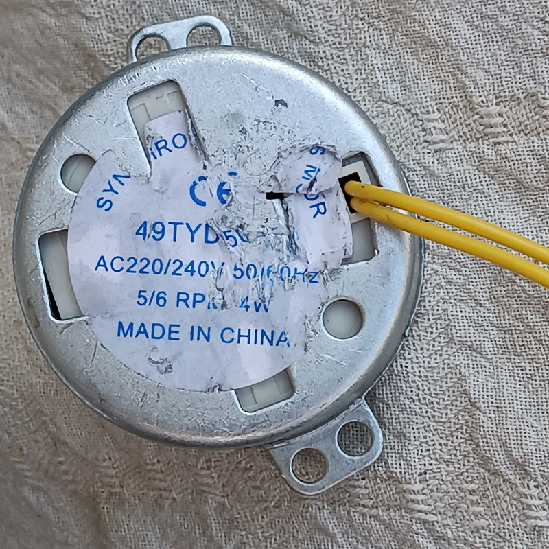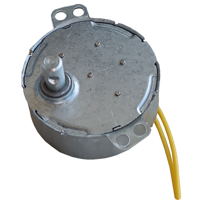 موتور جوجه گردان فر مدل 49TYD-500 الکتروموتوری است مقرون به صرفه برای استفاده در فر به عنوان گرداننده محور سیخ ها و در برخی پنکه ها به عنوان گرداننده کلگی پنکه و یا ساخت راک دستگاه های جوجه کشی کوچک. این موتور با ولتاژ برق شهر (220VAC) راه اندازی میشود و توان آن برابر 4 وات است. میتوان از این موتور در دستگاه جوجه کشی (42 تایی) و موتور چرخان پشت ویترین نیز استفاده کرد. RPM موتور 5.5 دور در هر دقیقه دو جهته است و جهت چرخش تصادفی تعیین میشود و اگر بار بیش از حد باشد و موتور گیر کند، جهت چرخش عوض میشود و چرخدنده ها سالم باقی می ماند. ابعاد شامل قطر شفت 7 میلیمتر (با سوراخی به قطر حدود 2.9 میلیمتر در وسط آن) ارتفاع شفت 1 سانتیمتر ، ضخامت موتور حدود 2 سانتیمتر و قطر موتور حدود 4.9 سانتیمتر است. همچنین 2 چرخدنده تحت فشار این موتور طبق تصویر فلزی است. اگر مدلی غیر از 49TYD-500 برایتان ارسال شد مرجوع کنید زیرا چرخدنده اش ممکن است فلزی نباشد. لازم به ذکر است برچسب پشت موتور به علت حمل و نقل کمی آشفته شده است.