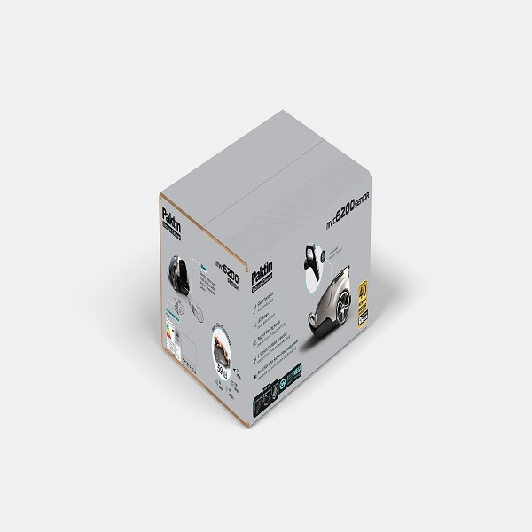 جاروبرقی پاکتین مدل 6200 سری SENIOR - سوپر ساینلنت ( کاملا بی صدا ) - مجهز به دسته دارای ریموت کنترل وایرلس - دارای قابلیت دمنده - دارای کیسه دائمی و یکبار مصرف - مجهز به گلدن مگا موتور ( تکنولوژی ژاپن ) - دارای کابل 7 متری و شعاع عملکرد 12 متری - لوله تلسکوپی فلزی با قابلیت تنظیم ارتفاع - دارای فیلتر ضد آلرژی هپا - مجهز به تکنولوژی راه اندازی نرم موتور ( SOFT START ) - دارای برس حرفه ای - مجهز به آلارم پر شدن کیسه - مجهز به آلارم افزایش دمای بیش از حد و غیر استاندارد الکتروموتور - مجهز به سنسور قطع کن موتور در شرایط افزایش دمای بیش از حد موتور و جلوگیری از سوختن الکترو موتور و افزایش عمر موتور - دارای 5 حالت مکش - دارای فیلتردوار جهت جلوگیری از پر شدن کیسه و افزایش عمر موتور - دارای لوله خرطومی با روکش کنفی
