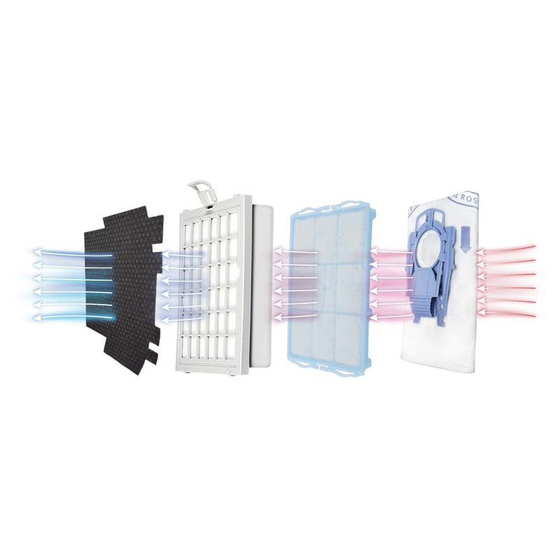 • توان مکش ۲۴۰۰ وات، قدرت پاککنندگی بالایی ایجاد میکند. • گشتاور ۳۱۰۰۰ دور در دقیقه، عملکرد سریعتری ارائه میدهد. • صدای ۷۵ دسیبل، استفاده آرام و بیصدا را فراهم میکند. • کلاس انرژی A، مصرف برق را به حداقل میرساند. • ظرفیت ۶ لیتری کیسه، نیاز به تخلیه مکرر را کاهش میدهد. • نشانگر پر شدن کیسه، زمان تخلیه را اطلاع میدهد. • قابلیت تراکم ۹۹٪ خاک، مانع انتشار گرد و غبار میشود. • فیلتر HEPA با ۵ لایه، هوای خروجی را تصفیه میکند. • ضخامت ۲ میلیمتری بدنه، مقاومت و استحکام را افزایش میدهد. • شیار نصب برس در دو نقطه، دسترسی سریعتری فراهم میکند. • شعاع عملکرد ۱۱ متری، محدوده حرکتی گستردهای ایجاد میکند. • کوپلینگ ۳۶۰ درجه، حرکت روان و بدون گیر را ممکن میسازد. • برس مخصوص سطوح سخت، نرم و گوشهگیر، نظافتی کاملتر فراهم میکند. • لوله خرطومی کنفی، دوام و انعطافپذیری بیشتری ارائه میدهد. • سیم جمعکن اتوماتیک، جمعکردن کابل را آسان میکند. • سه عدد پاکت میکروفیلتری ضد حساسیت، بهصورت هدیه همراه دستگاه ارائه میشود. • چرخهای ۳۶۰ درجه، جابهجایی دستگاه را سادهتر میکنند. • فیلتر محافظ موتور، فیلتر HEPA و فیلتر کربنی، از ورود گرد و غبار، بو و باکتری جلوگیری میکنند. • سیستم فیلتراسیون چهارمرحلهای، کیفیت هوای خروجی را بهبود میبخشد. • لوله تلسکوپی با قابلیت تنظیم ارتفاع، کاربری راحتتری فراهم میکند. • دستگیره خرطومی گریپدار، کنترل بهتر و ارگونومی مناسبی ایجاد میکند. • فیلتر سایکلون (هدیه)، قدرت جذب ذرات را افزایش میدهد. • درپوش آنتیباکتریال، از رشد میکروبها جلوگیری میکند و برای اولینبار در ایران ارائه شده است. • چرخهای فلزی، مقاومت و طول عمر بالاتری تضمین میکنند.