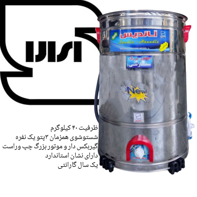 پتوشوی گیربکس دار 40 کیلویی آساندیس: بزرگترین و پرقدرت ترین پتوشوی خانگی تولید شده توسط شرکت تولیدی آساندیس است.این دستگاه با ظرفیت 40 کیلوگرم و با اتکا به موتور چپ و راست استاندارد و گیربکس خارجی قدرتمندی که دارد میتواند همزمان 3 پتو یک نفره را مورد شستشو قرار دهد بدون اینکه آسیبی به موتور و گیربکس آن وارد شود .در این مدل برخلاف برندهای مشابه بجای دوتسمه از گیربکس خارجی استفاده شده است که باعث انتقال بهتر قدرت میشود.بدنه دستگاه تمام استیل و ضخامت ورق استفاده شده 0.5 میباشد که نسبت به سایر مدل ها ضخیم تر میباشد که باعث افزایش عمر و مقاومت دستگاه میشود.شستن پتو از جمه معضلاتی هست که خانم های خانه دار همیشه درگیر آن هستند و با توجه به اینکه شستن پتو های پر حجم میتواند آسیب جدی به موتور ماشین های لباسشویی وارد کند مردد هستند که از ماشین های لباسشویی استفاده کنند یا نه که در جواب باید گفت ابدا شستن پتو و پرده های بزرگ با ماشین های لباسشویی توصیه نمیشود که در تکرار قضیه میتواند موجب آسیب جدی ماشین لباسشویی شود. اما با اتکا به این دستگاه با خیال راحت و بدون دغدغه فکری میتوان پتو و پارچه های ضخیم و سنگین رو شستشو داد.لازم به ذکر است ظرفیت این پتوشوی 40 کیلوگرم و دارای نشان استاندارد و یک سال گارانتی میباشد.