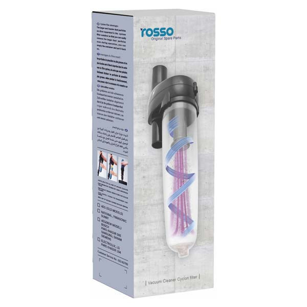 فیلتر دوار روسو بین دسته جارو و لوله تلسکوپی قرار می گیرد و کارایی آن همانند مخزن جاروبرقی می باشد و اشیای بزرگ مانند انگشتر و غیره که به صورت ناخواسته جارو می شوند به جای آن که وارد کیسه شوند وارد لیوان این فیلتر می شوند. بسته 2 عددی این فیلتر با دارا بودن سری های مختلف مناسب انواع جاروبرقی ها می باشد.