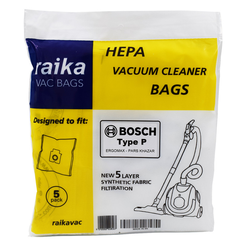 کیسه جاروبرقی یکبارمصرف رایکا با 5 لایه هپا در هر طرف تهیه شده که بااستفاده از فناوری اولتراسونیک به یکدیگر متصل شدهاند. بافت منسجم این کیسه و عدم وجود شکاف در محل اتصال از ورود ذرات به موتور و درنهایت هوای داخلی اتاق ممانعت کرده و موجب افزایش عمر دستگاه، مصرف کمتر انرژی و بهبود قدرت مکش میشود. این محصول مناسب جاروبرقیهای بوش BGL82030 است و در بستهبندیهای 5 عددی نایلونی ارائه میشود.