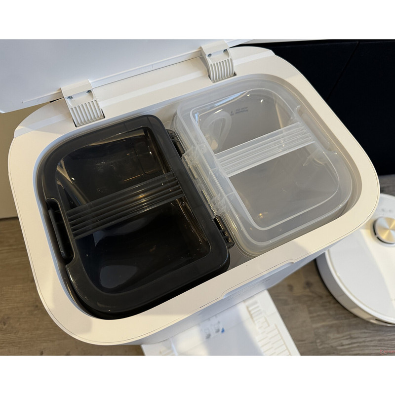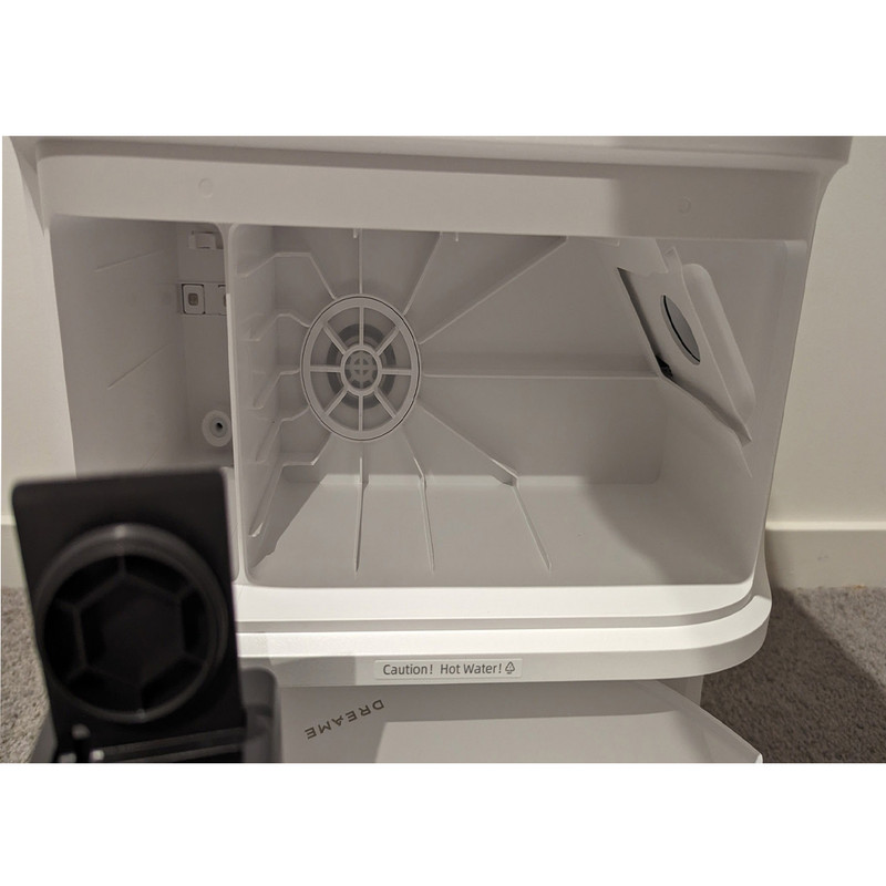 این محصول دارای یک داک جداگانه برای راحتی بیشتر نیز هست که می تواند مدت زمان تخلیه یا پر کردن مجدد مخزن را افزایش دهد. جارو رباتیک طراحی دایره ای شکل به ابعاد 350 × 350 × 97 میلی متر و وزن 3.7 کیلوگرم دارد. همراه با ان داک شارژ و مخزن ها است که شستشوی جارو نیز از همان طریق انجام می شود.