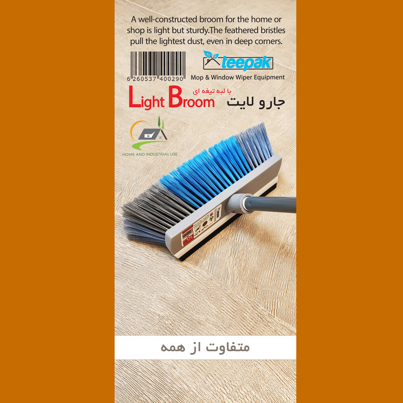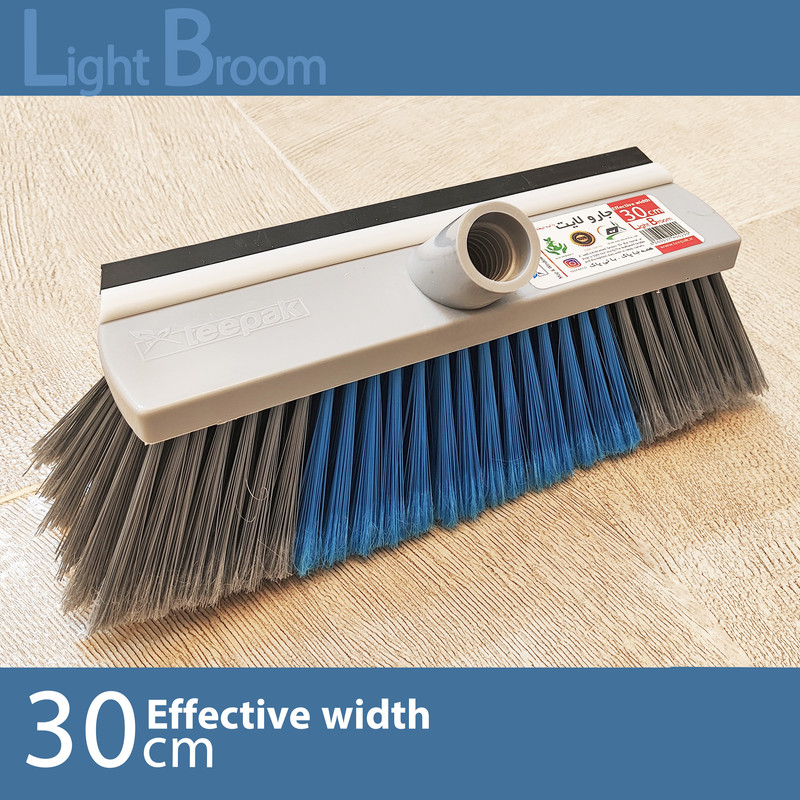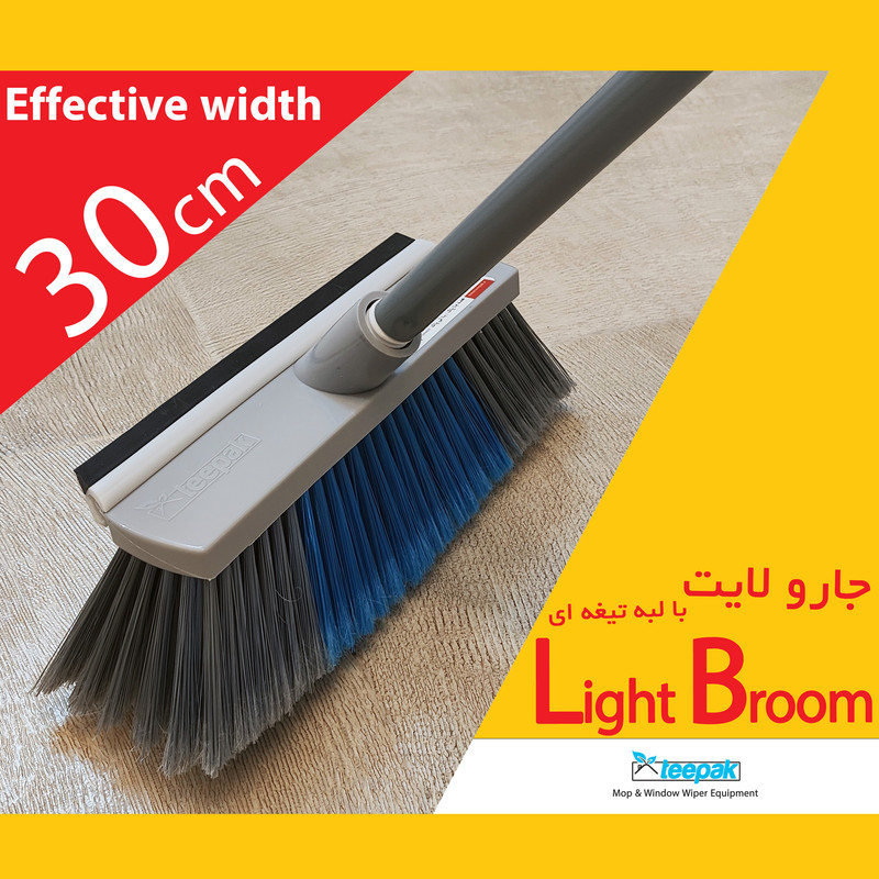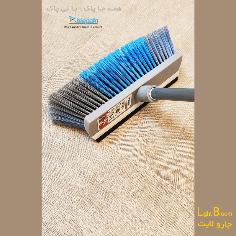 یکی از پرکاربردترین نوع از جاروها ، جاروهای با قابلیت نصب دسته بلند می باشند. تی پاک نیز با ارائه جاروی لایت با لبه تیغه ای ، راحتی و کیفیت و زیبایی را هم زمان در اختیار شما قرار می دهد .ویژگی ممتاز و منحصر به فرد این محصول لبه تیغه ای لاستیکی نصب شده می باشد که به شما امکان می دهد علاوه بر جارو نمودن، آب و مایعات کف را نیز هنگام شستشو جمع آوری نمائید . نصب دسته بلند 120 سانتی متری بر روی این محصول به شما این امکان را می دهد تا بدون خم شدن و به راحتی در هنگام ایستادن، اقدام به جارو نمودن بنمائید .این محصول قابلیت نصب دسته های تلسکوپی (کشوئی ) تی پاک را نیز دارد که می توانید این محصول را برای مکانهای مرتفع استفاده نمائید. استفاده از الیاف با ضخامت و کیفیت مناسب، دوام و ماندگاری را به همراه دارد . پر شدن و و نازک شدن سر الیاف جارو باعث می شود تا علاوه بر پراکنده نشدن زباله و آشغال ها ، بتوانید نظافت کاملی را انجام دهید .کفی اصلی جاروی لایت تی پاک دارای اندازه بیست و چهار سانتی متری می باشد اما به علت زاویه دار بودن کاشت این الیاف ، عرض موثر این محصول در هنگام استفاده برای شما به 30 سانتی متر می رسد. استفاده از بهترین مواد پلاستیکی در ساخت کفی پلاستیکی جاروی دورنگ تی پاک، دوام طولانی مدت بدون کوچکترین نگرانی را برای شما فراهم می آورد. این محصول همراه با دسته فلزی 120 سانتی متری با رنگ کوره ای الکترواستاتیک عرضه می شود .
